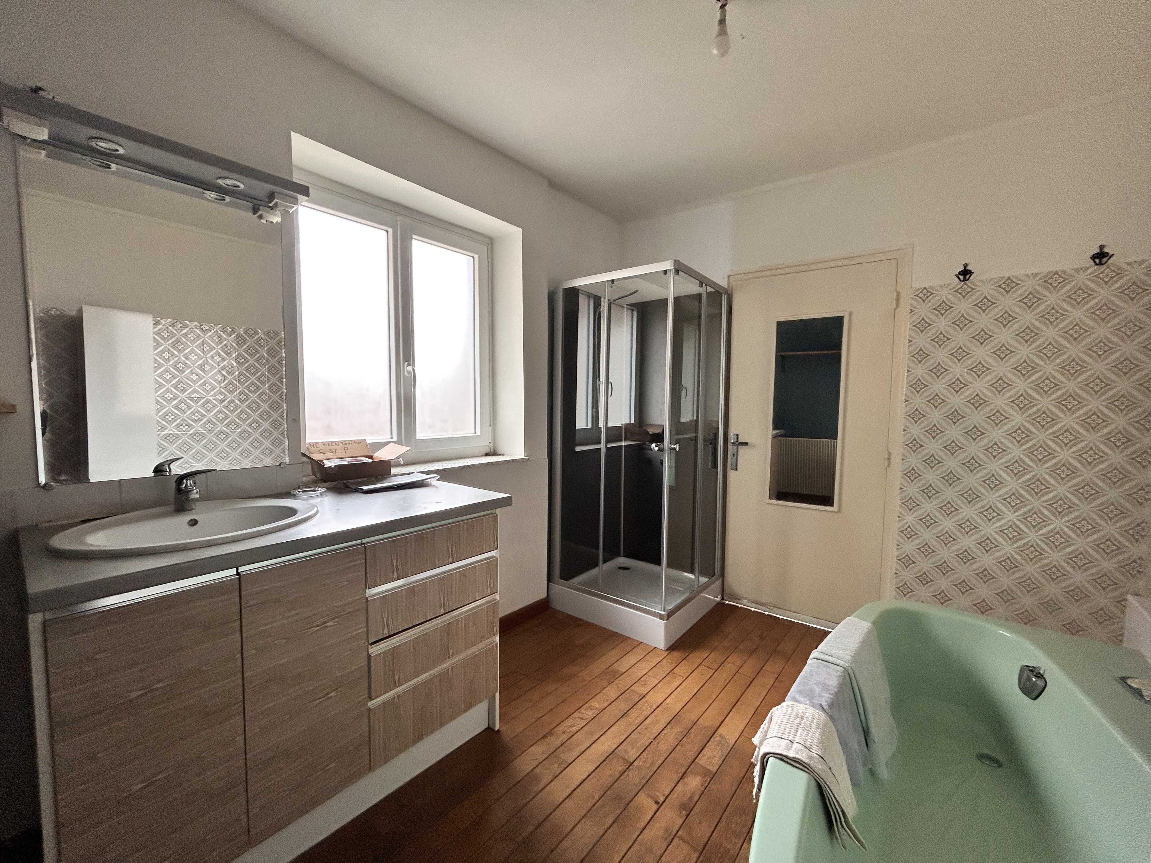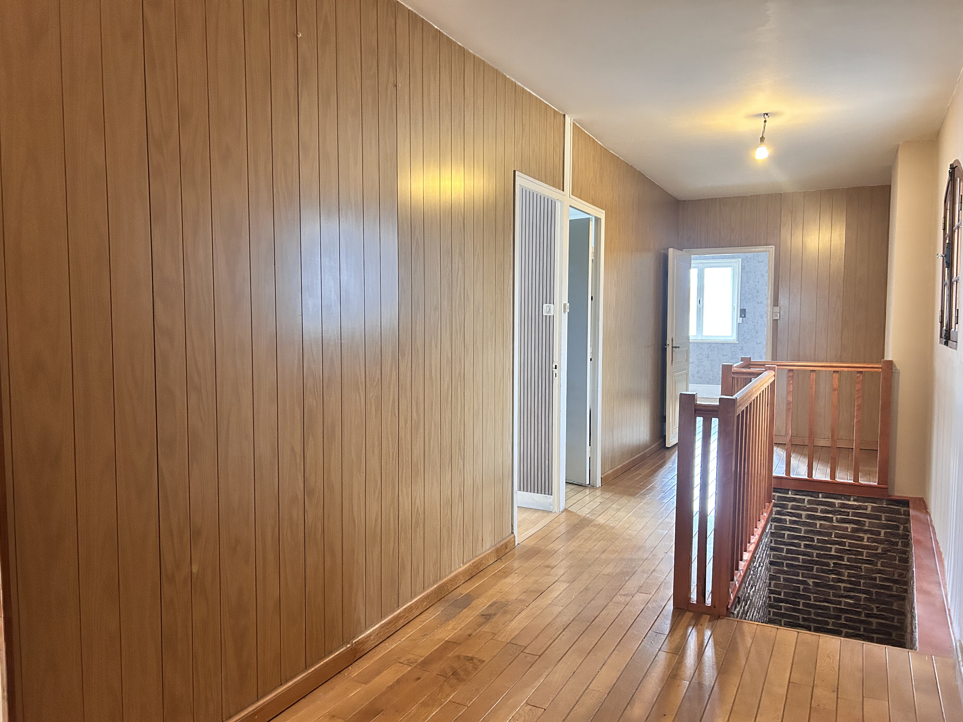 À l’étage, un grand palier dessert trois chambres spacieuses de 23 m², 19 m² et 10 m², ainsi qu’une salle de bains comprenant baignoire, douche et vasque.