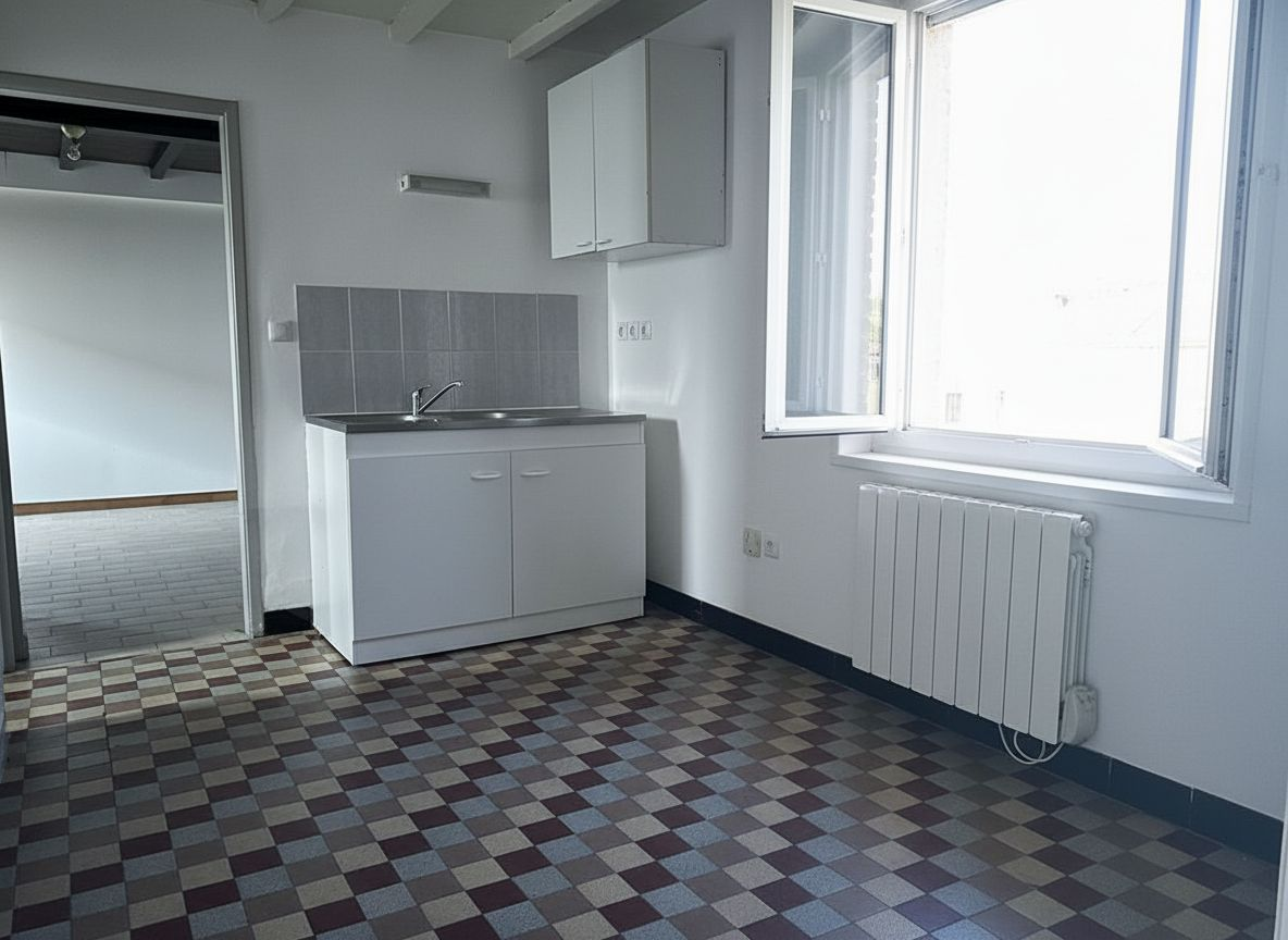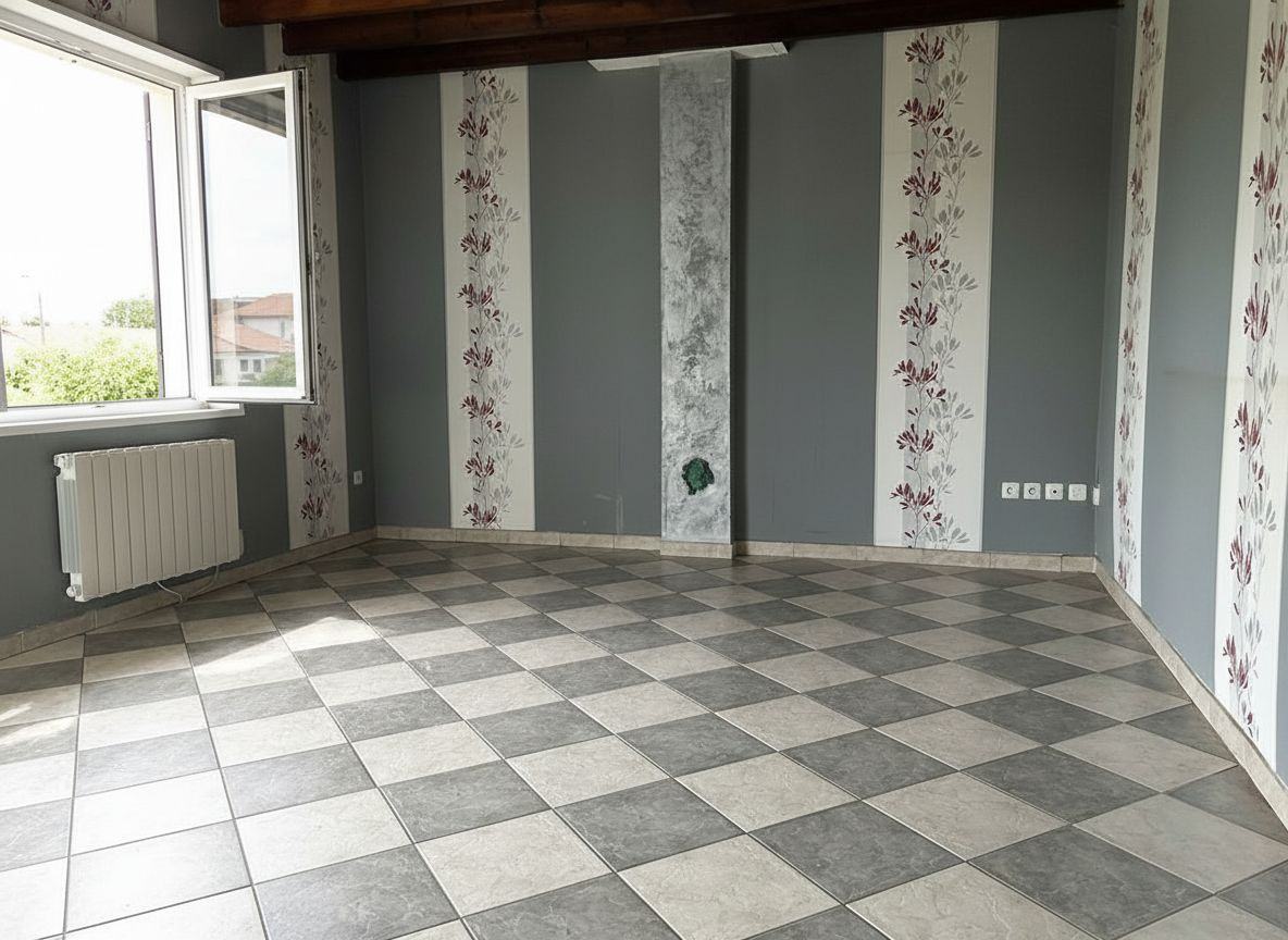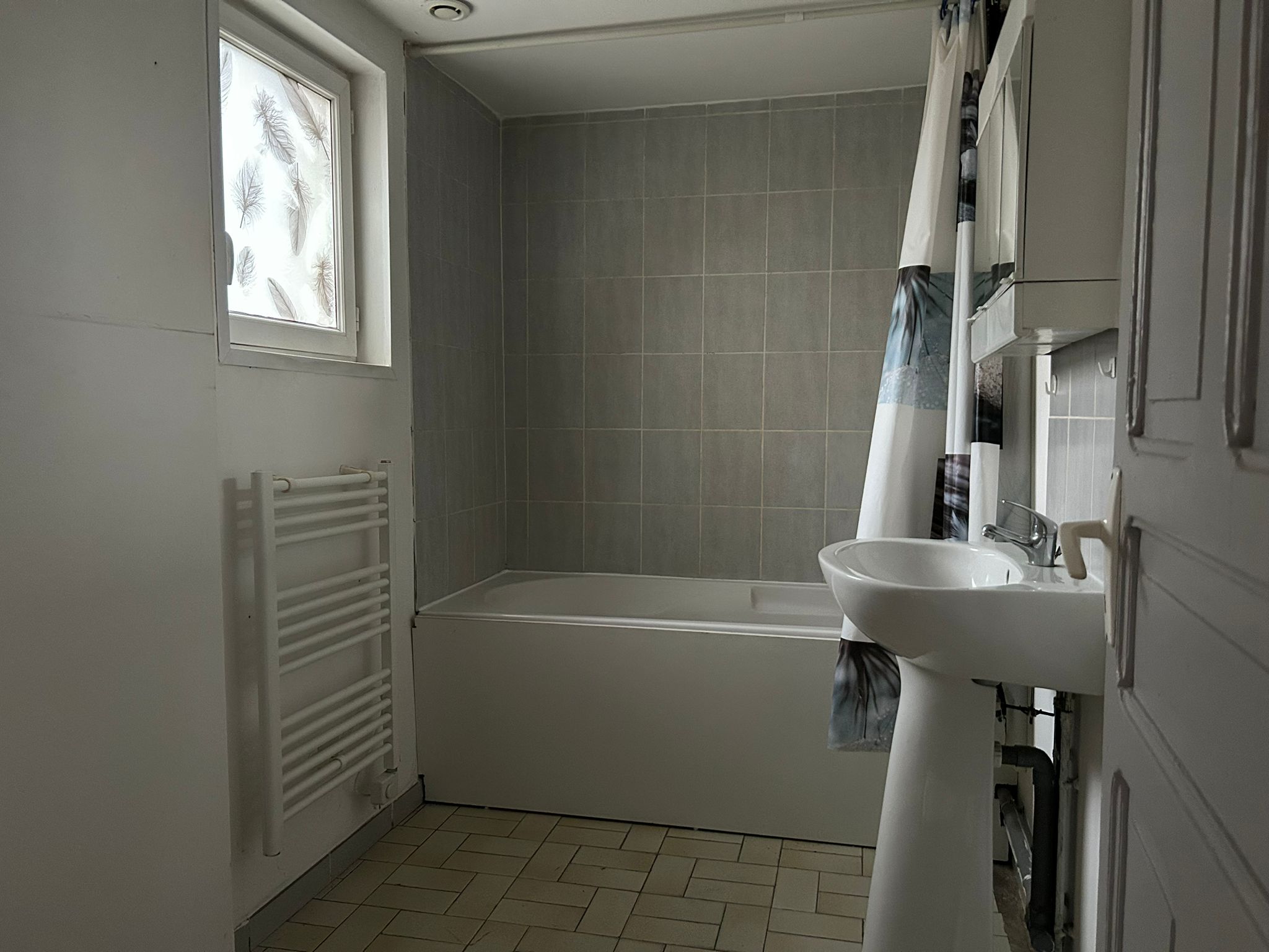 Salle salon, cuisine séparée, deux chambres de (15 et 11m²), une salle de bains avec baignoire et un WC.