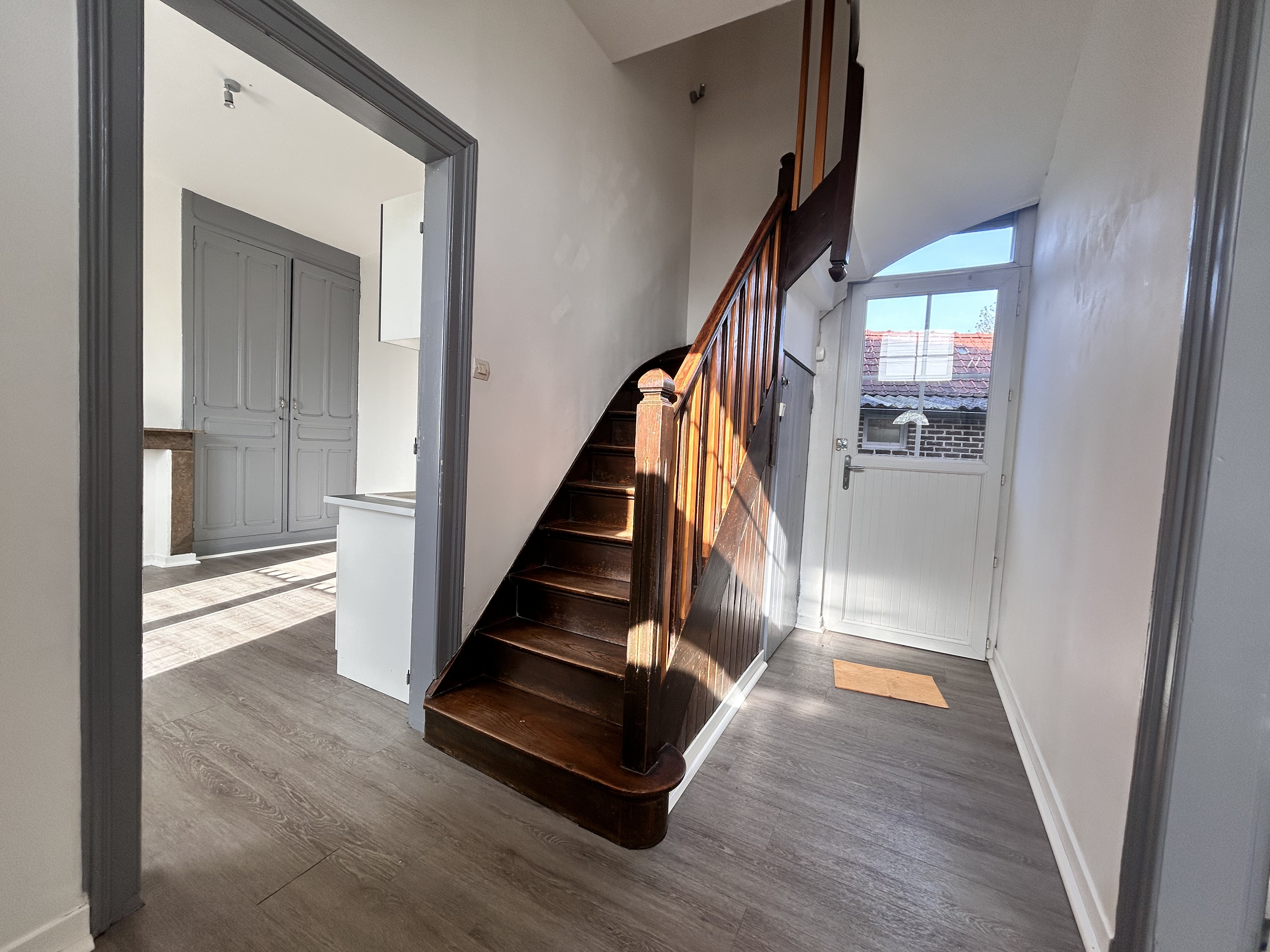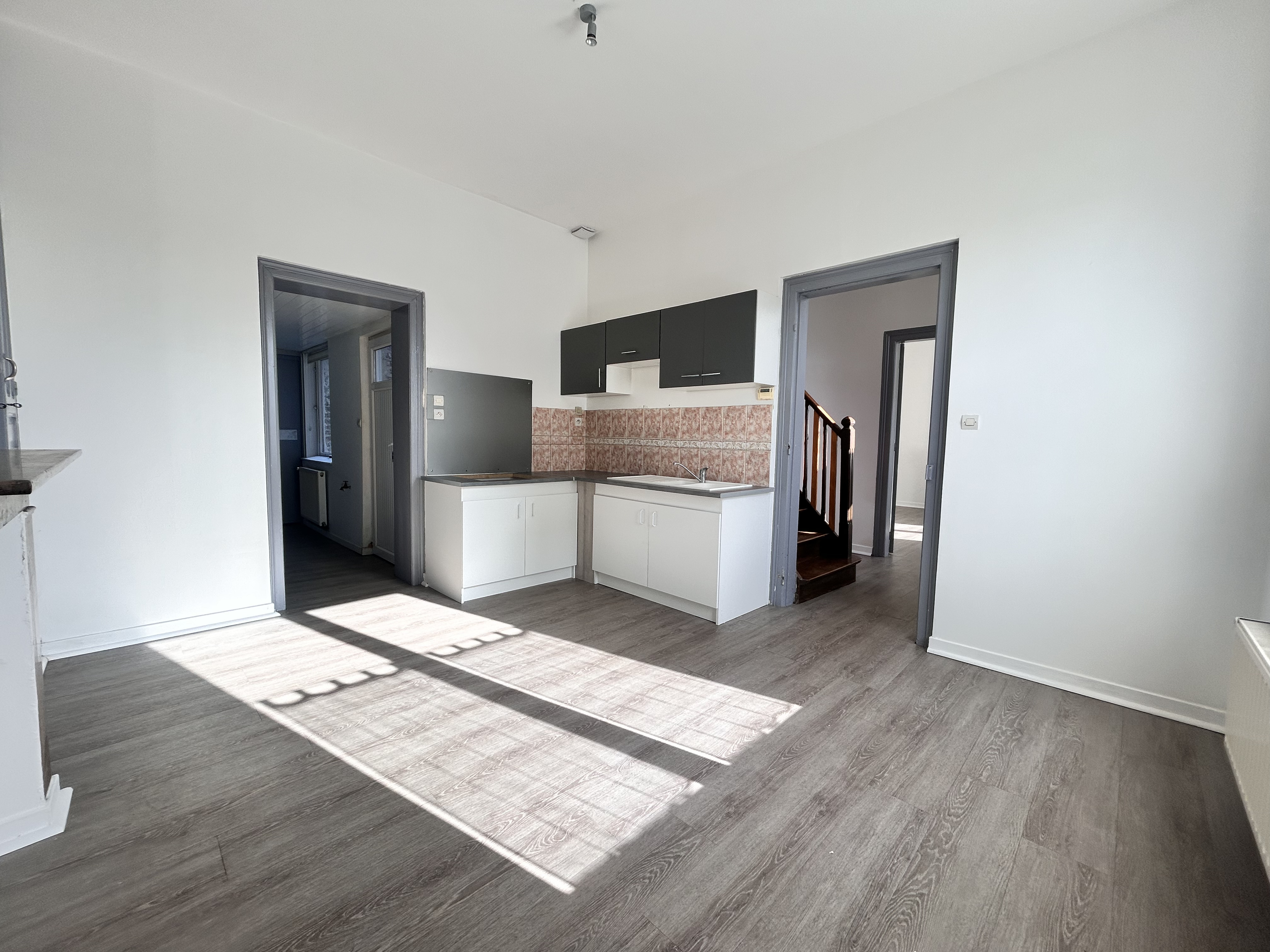 Au rez-de-chaussée : Hall d'entrée, salon, cuisine séparée et meublée, salle d'eau avec douche et WC séparé.