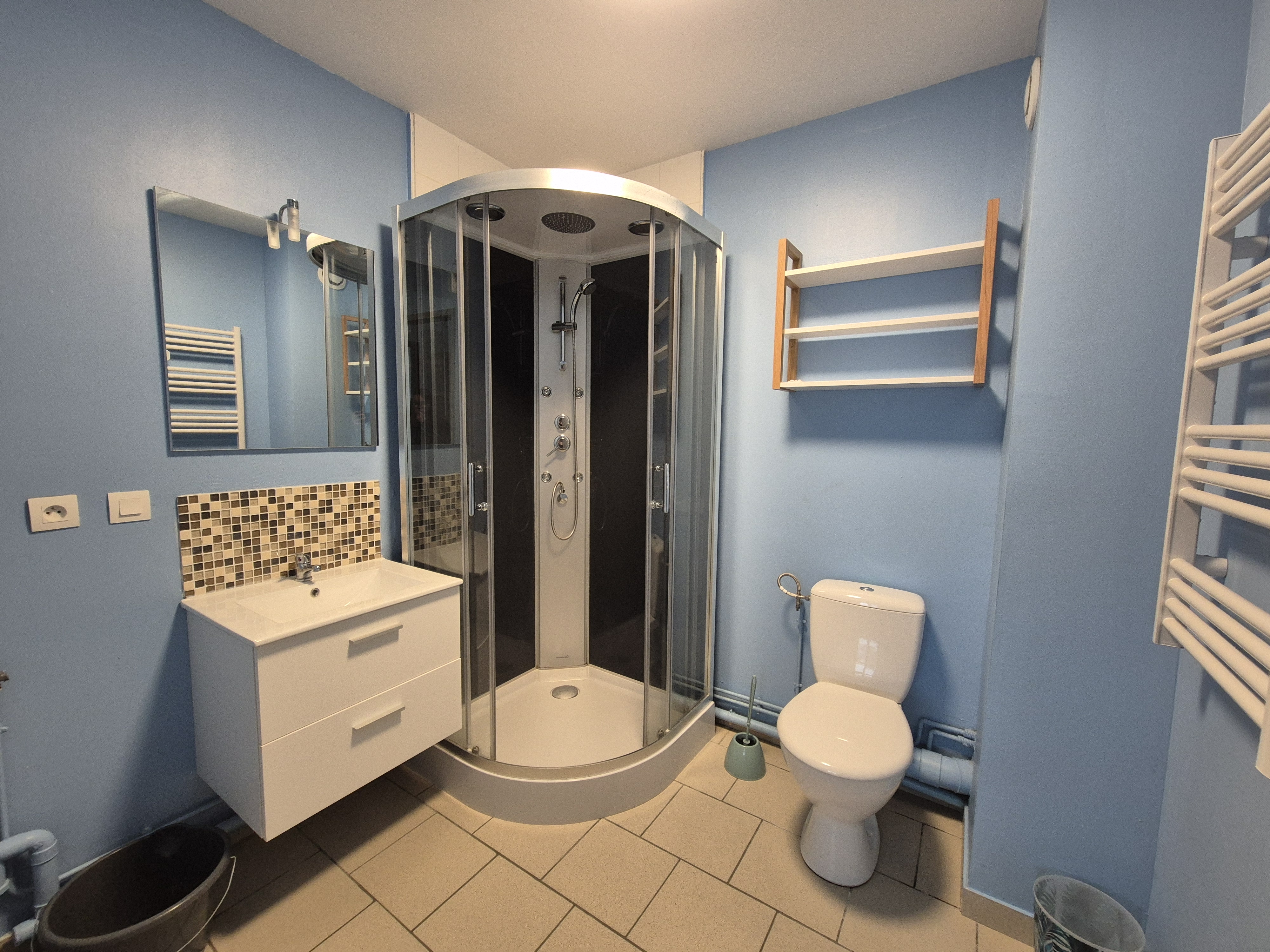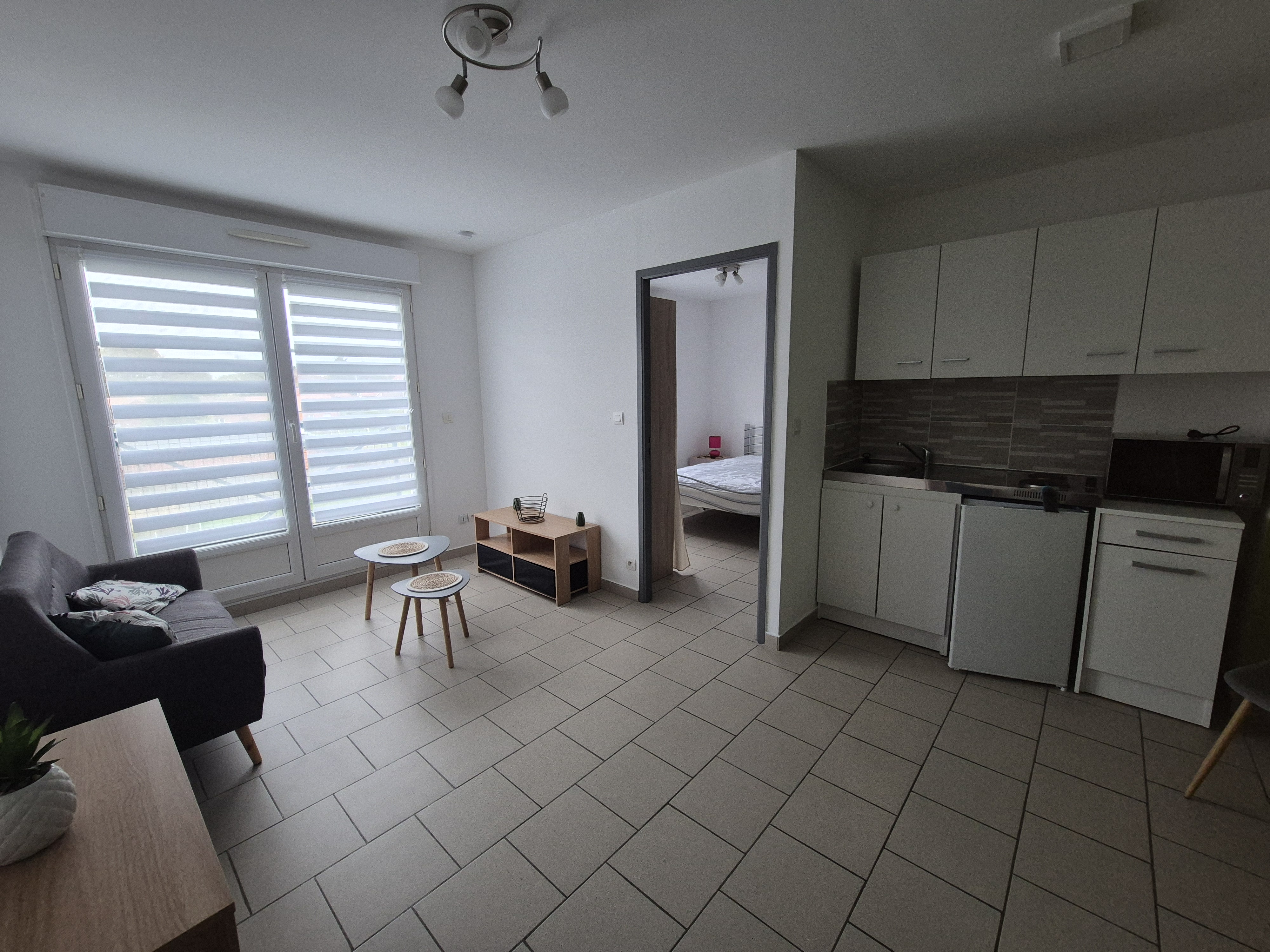 T2 meublé de 29m² situé dans une résidence proche du centre-ville, offrant pièce de vie avec cuisine ouverte et équipée, une chambre, une salle de bains avec douche et wc.