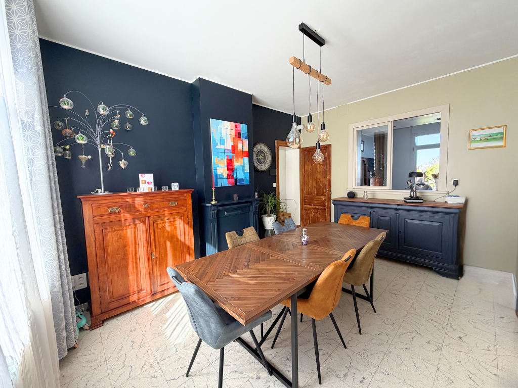 - une salle à manger ouverte par une verrière sur la cuisine équipée,