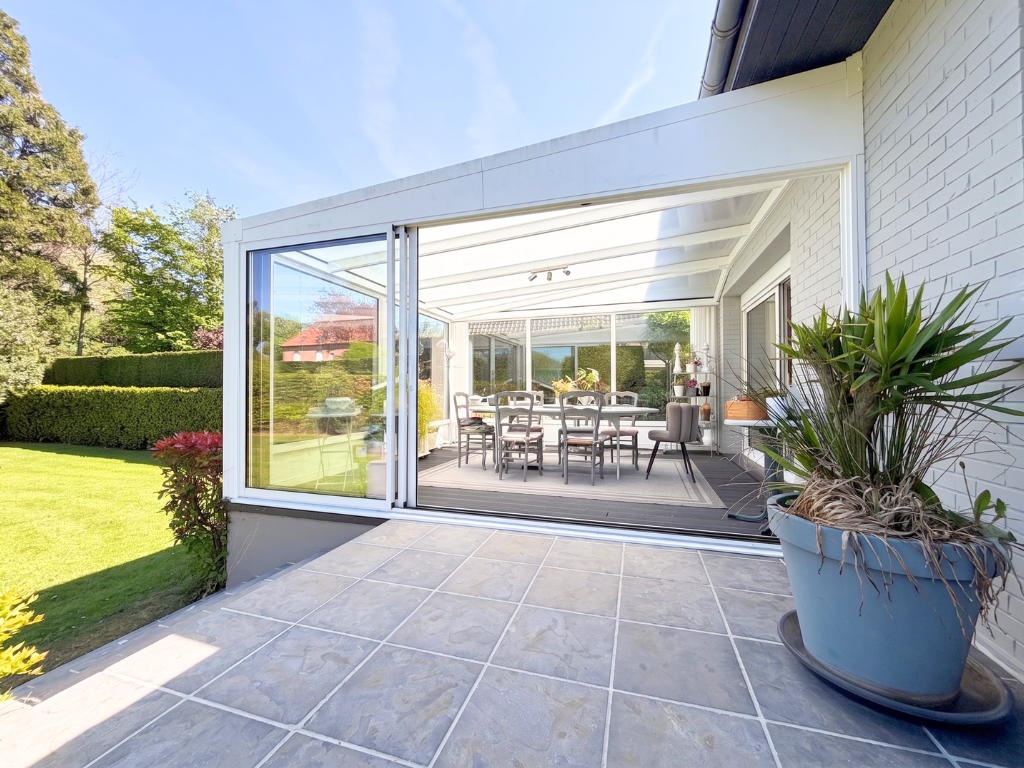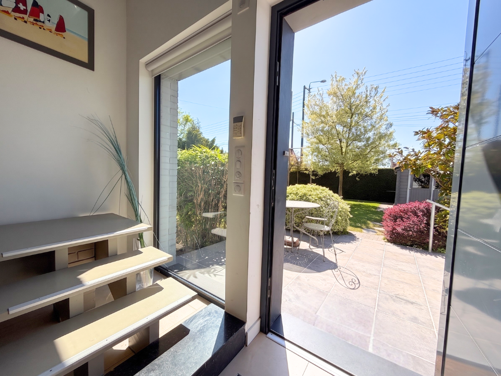 La lumière du jardin verdoyant inonde les volumes grâce à de belles ouvertures.