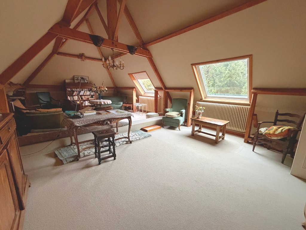 un grand palier, 3 chambres dont une magnifique chambre de 30 m² avec poutre apparentes et une seconde salle de bains.